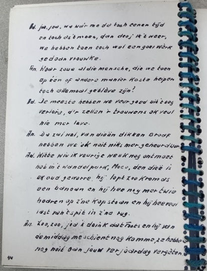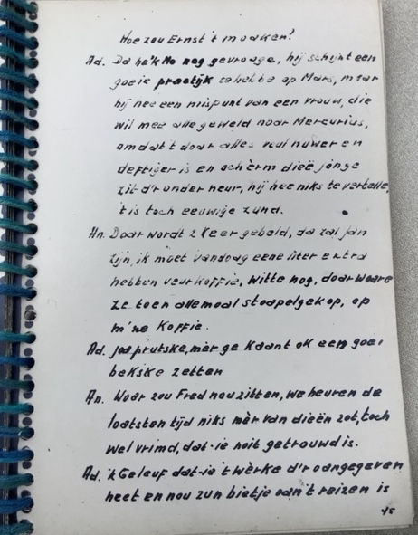 Gemeenschapsgevoel: Het gedicht schetst een levendig beeld van de onderduikgemeenschap. We leren de namen van de bewoners kennen: de jarige Ad, de initiatiefneemster Tante Annie (de vrouw van Ad van Eerd), Tante Jo, Tante Tini, Oom Toon en Oma uit den Bosch. Dit benadrukt de hechte band en de onderlinge afhankelijkheid. Tante Annie's woorden, "We spelen 't met elkaar wel klaar," vatten de essentie van hun saamhorigheid perfect samen.
