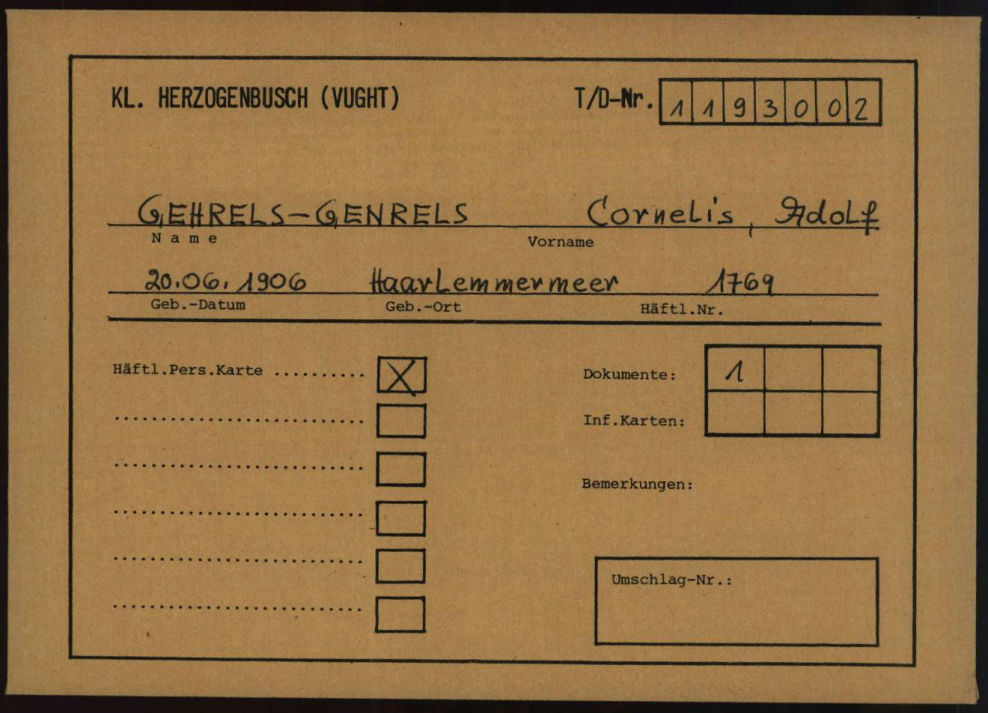 Begin juli 1943 had mevrouw Gehrels een marechaussee-uniform genaaid. De man die dit zou gaan dragen werd echter opgepakt, maar dat wist men nog niet. Gehrels zelf was net thuisgekomen uit de Haarlemmermeer met geld voor zijn fonds.